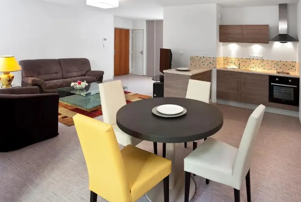 La Résidence Therm’Appart se situe au cœur de Vichy, à proximité de nombreux sites d’intérêt. Situé à 15 boulevard du Sichon, ce lieu offre une grande variété d’aménagements adaptés à différents besoins, notamment des installations pour les invités handicapés ainsi qu’un parking gratuit disponible sur place. Les appartements proposent des espaces confortables équipés de WiFi gratuit et de chambres non-fumeurs. Le restaurant intégré permet aux résidents de profiter d’une cuisine locale tout en restant près des attractions principales telles que le Grand Téléski ou les Parcs des Célestins & Lardy. À moins de 1 km du centre-ville, cette résidence assure un accès facile aux commerces et services essentiels.